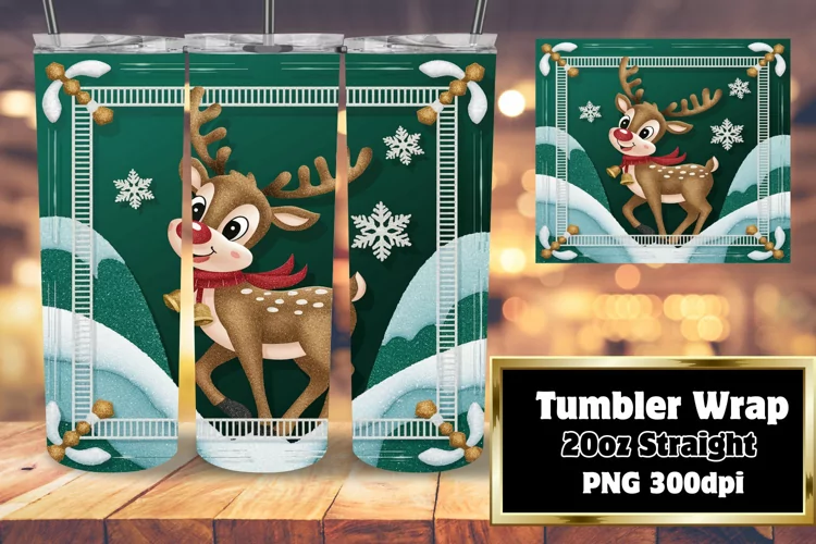 VIVID 20oz Sublimation Tumbler Template , 3D Xmas