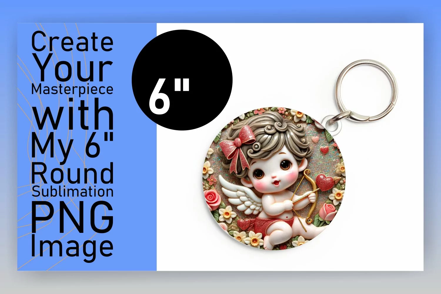 Stylish Round Design for Sublimation , 3D Cupid