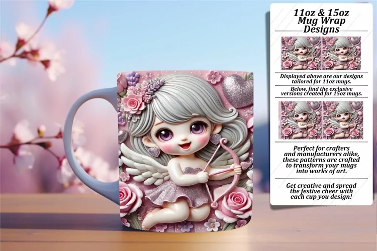 Inspiring 15oz Mug Wrap Png Template , 3D Cupid example image 1