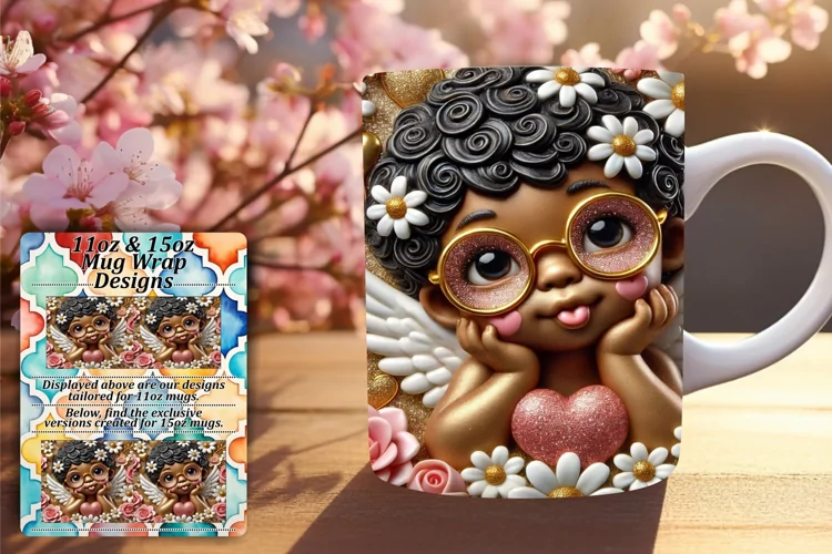 Whimsical 15oz Mug Wrap Png Template , 3D Cupid