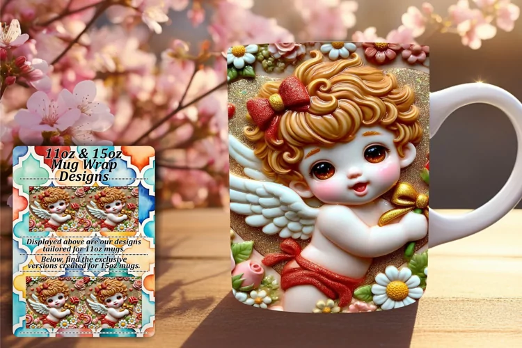 Gorgeous 15oz Mug Wrap Png Design , 3D Cupid example image 1