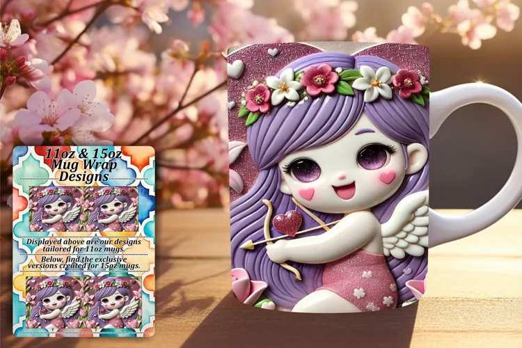 Trendy 11oz Mug Wrap Png Design , 3D Cupid