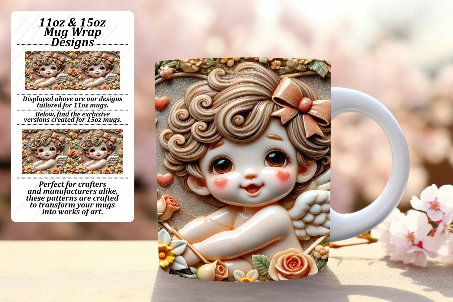 Whimsical 15oz Mug Wrap Png Artwork , 3D Cupid example image 1