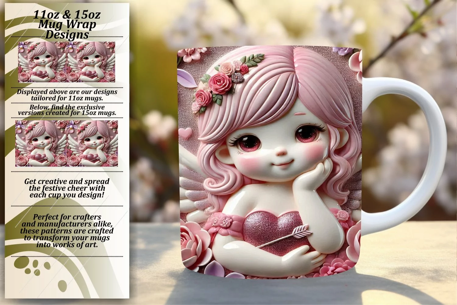 STUNNING 15oz PNG Mug Wrap Design , 3D Cupid