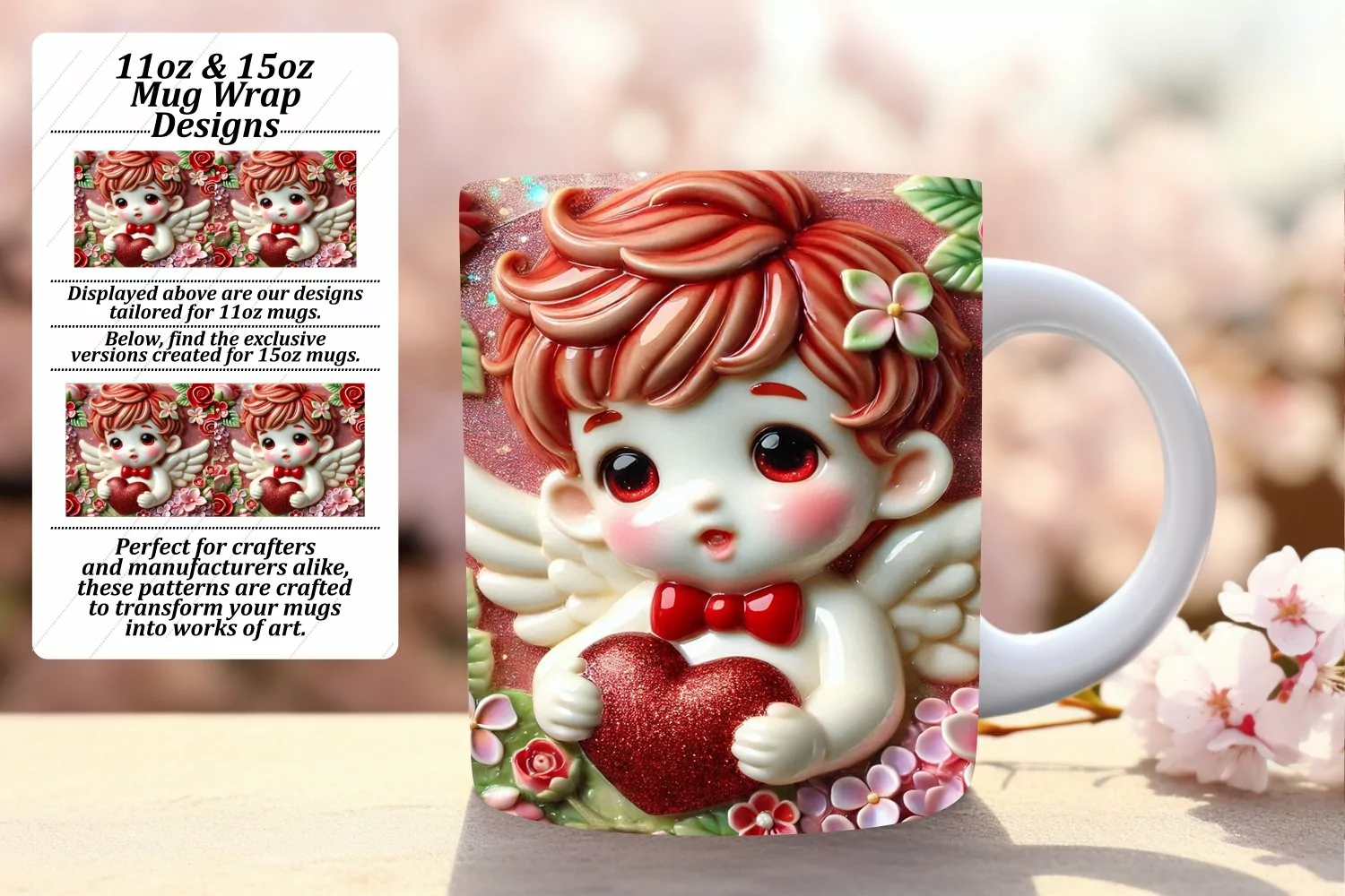 CUSTOM 11oz Mug Wrap PNG Artwork , 3D Cupid example image 1