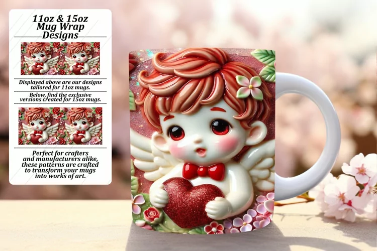 CUSTOM 11oz Mug Wrap PNG Artwork , 3D Cupid