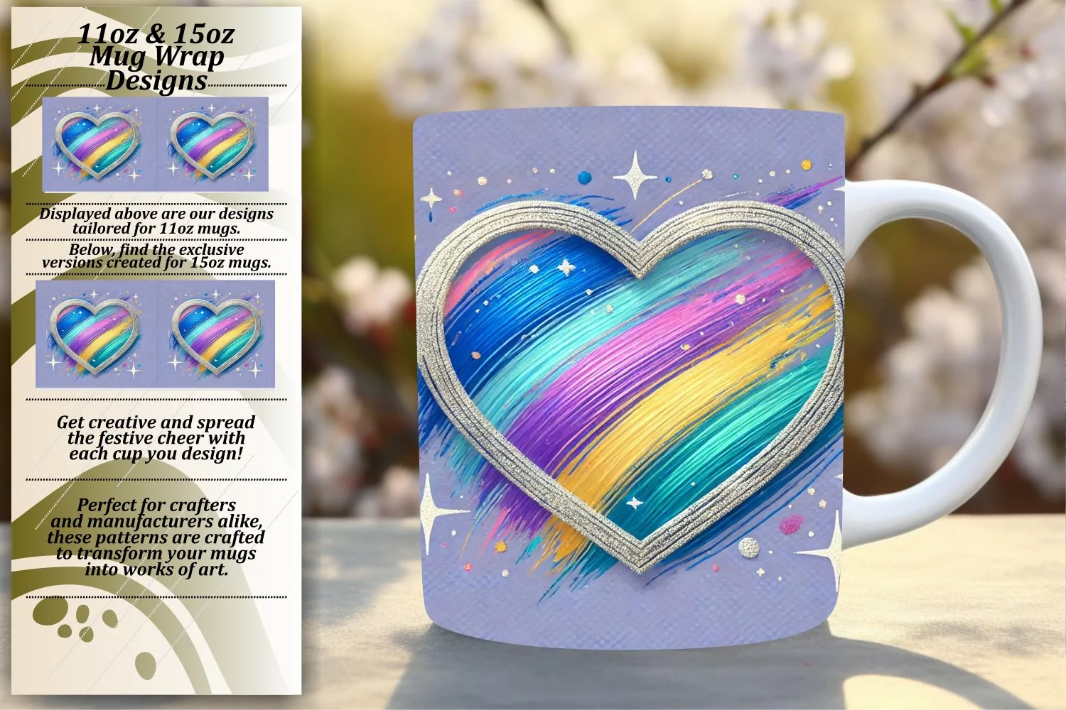 Charming 11oz Mug Wrap Png Design , Heart example image 1