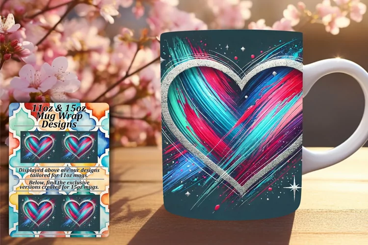 Stylish 11oz Mug Wrap Png Artwork , Heart