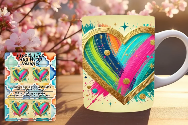 Trendy 15oz Mug Wrap Png Design , Heart example image 1