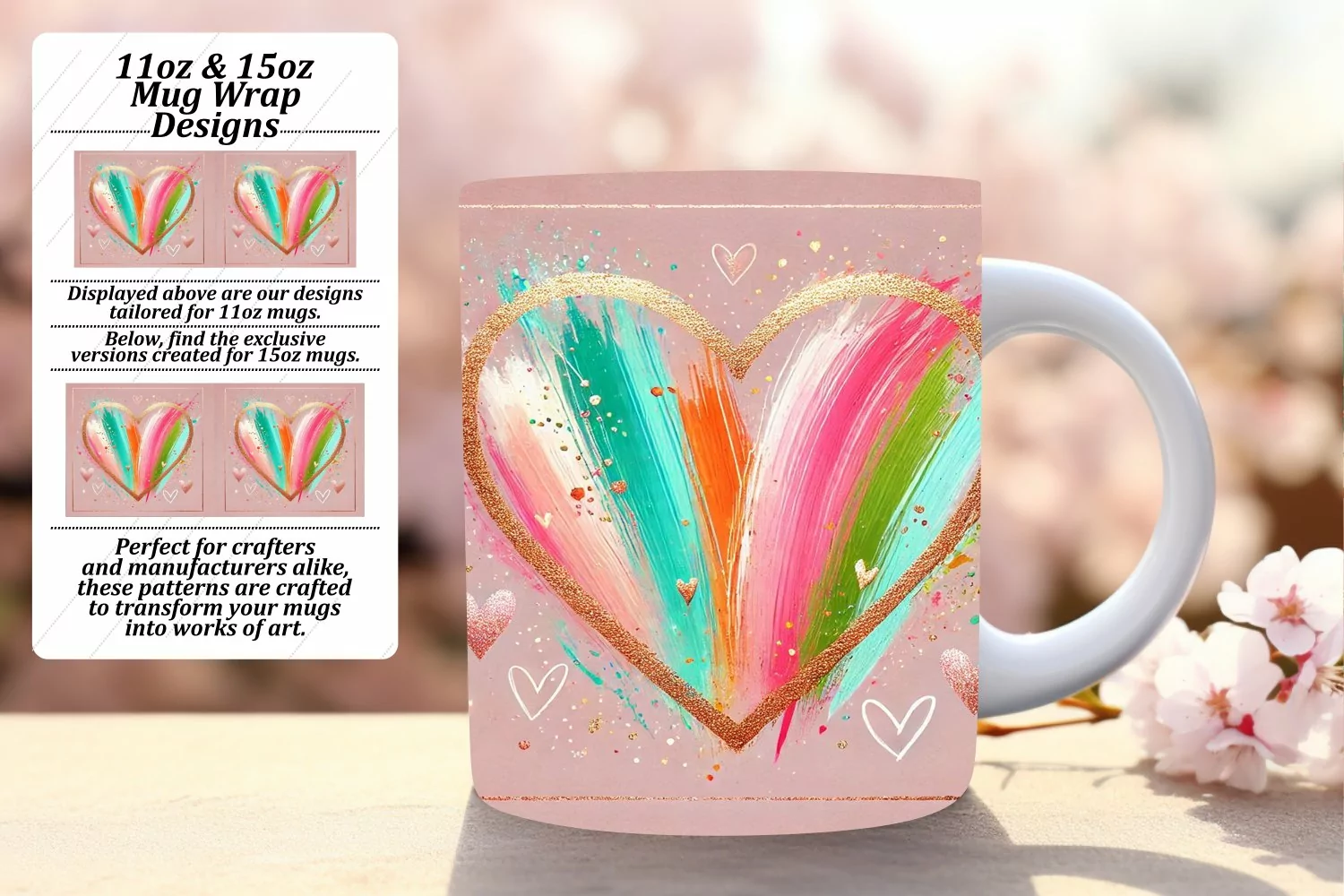 Custom 11oz Mug Wrap Png Design , Heart