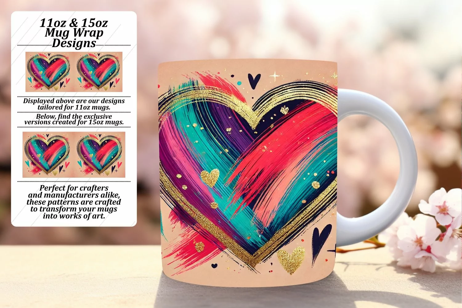 Beautiful 15oz Mug Wrap Png Design , Heart