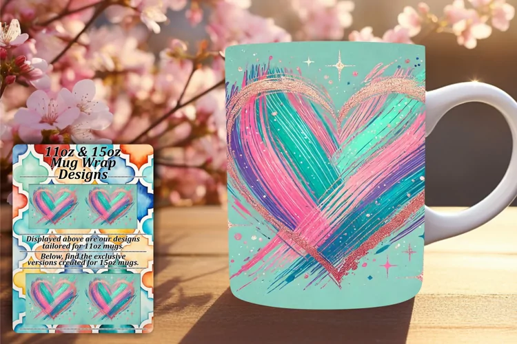 Vibrant 11oz Mug Wrap Png Artwork , Heart