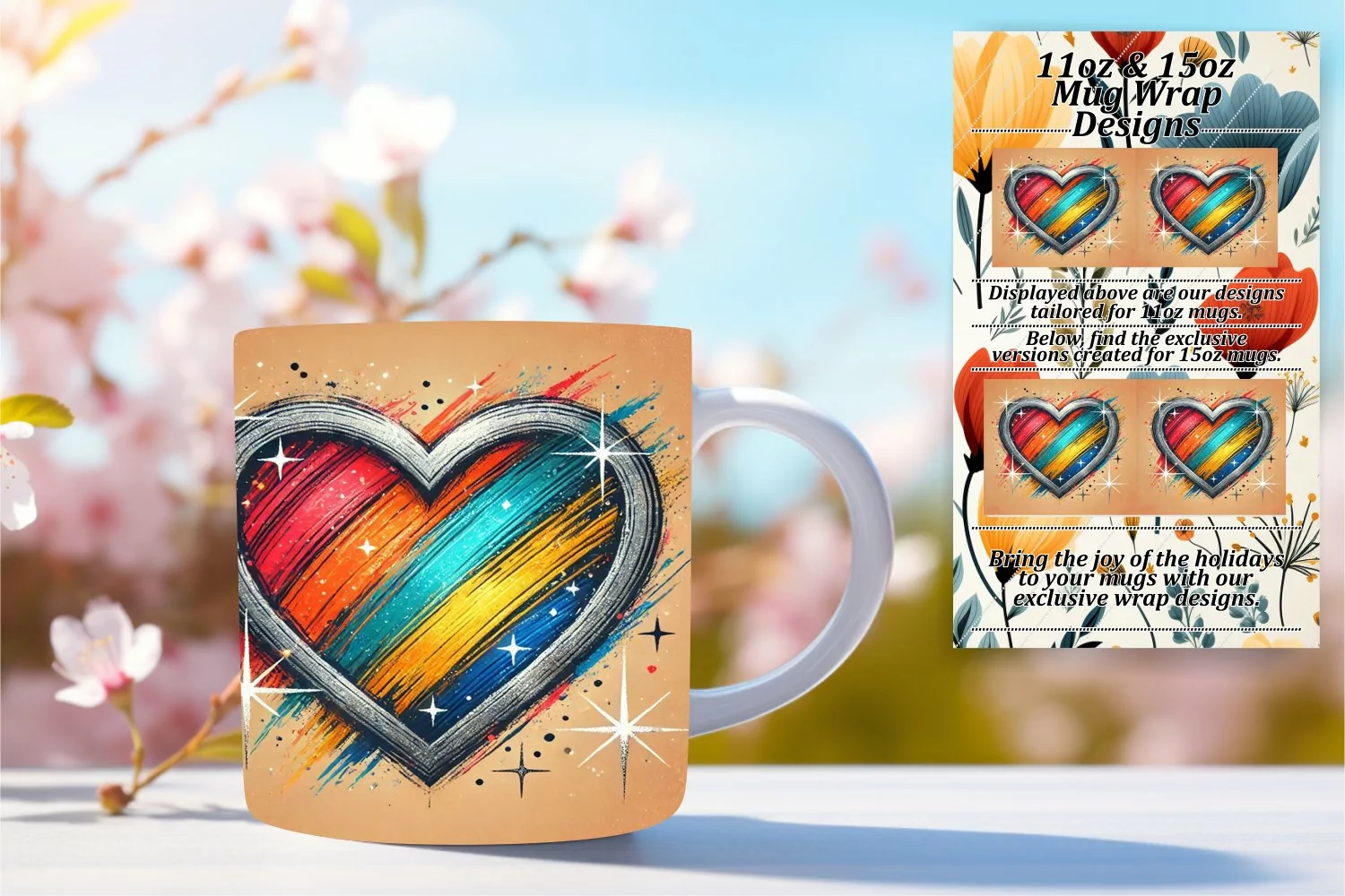Luxurious 11oz Mug Wrap Png Design , Heart example image 1