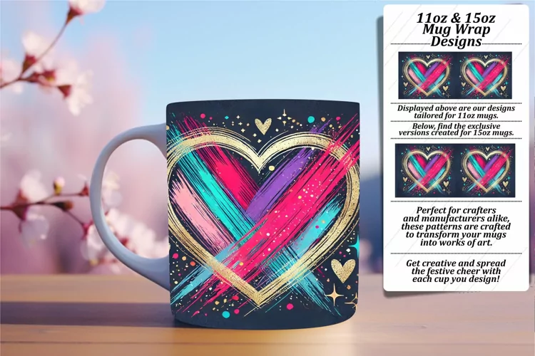 Graceful 11oz Mug Wrap Png Template , Heart example image 1
