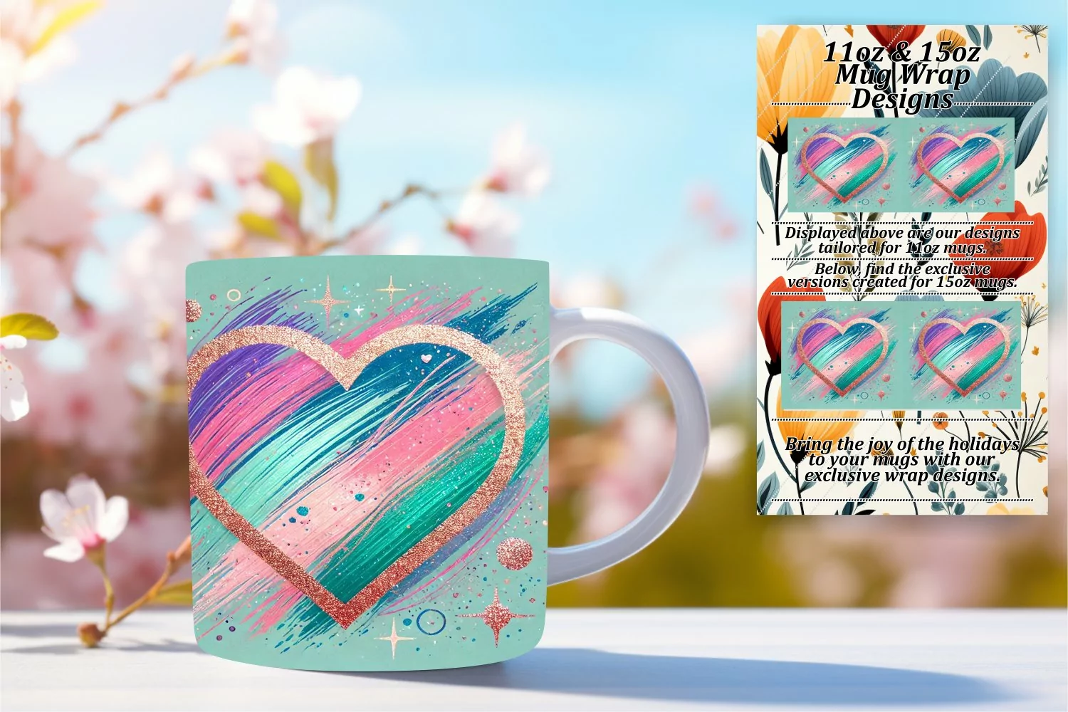 Customized 15oz Mug Wrap Png Design , Heart example image 1