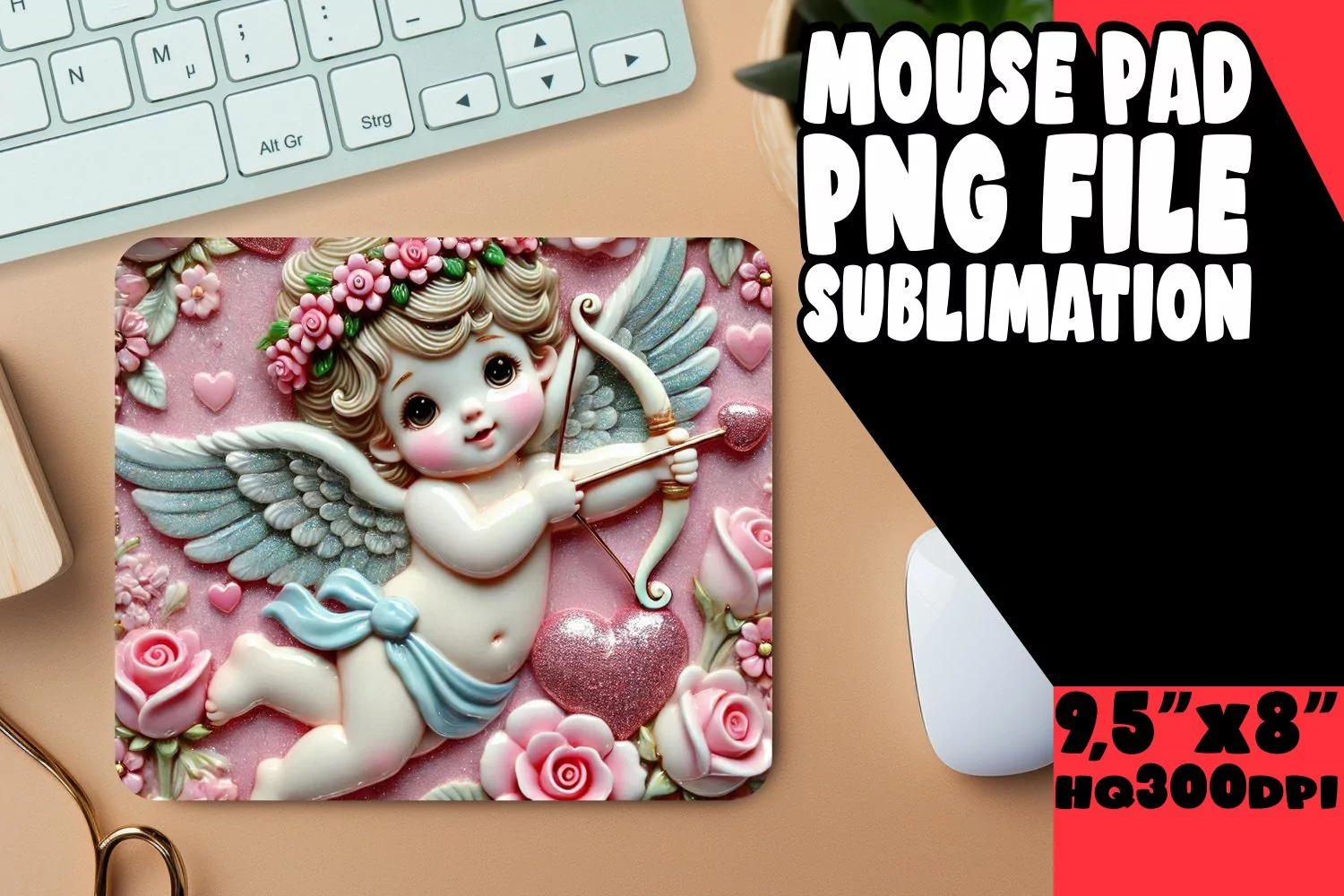 Similar Design Products to SWEET DESK PAD PLAYFUL PNG, 3D Cupid