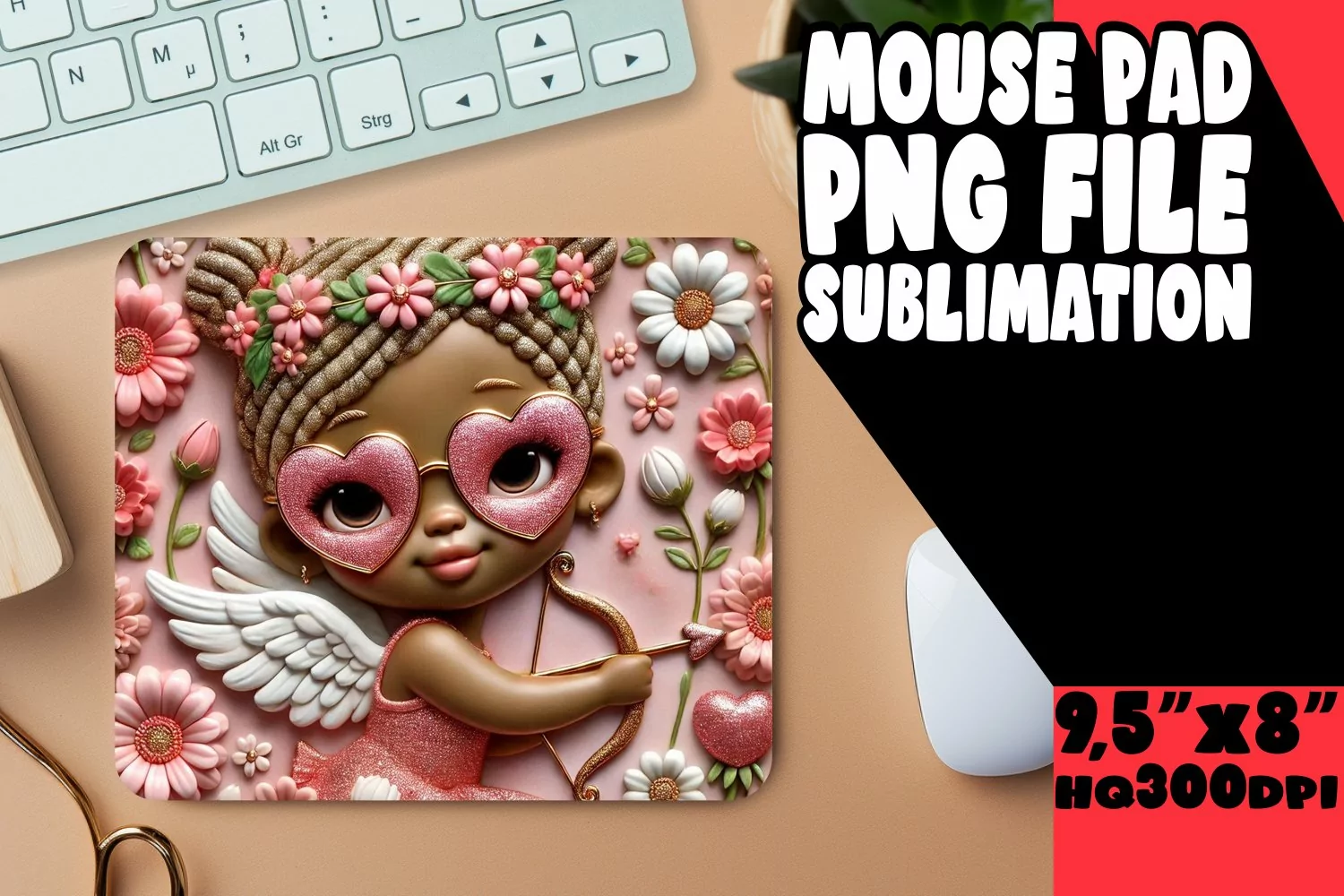 Similar Design Products to BLISSFUL DESK PAD ARTISTIC PNG, 3D Cupid