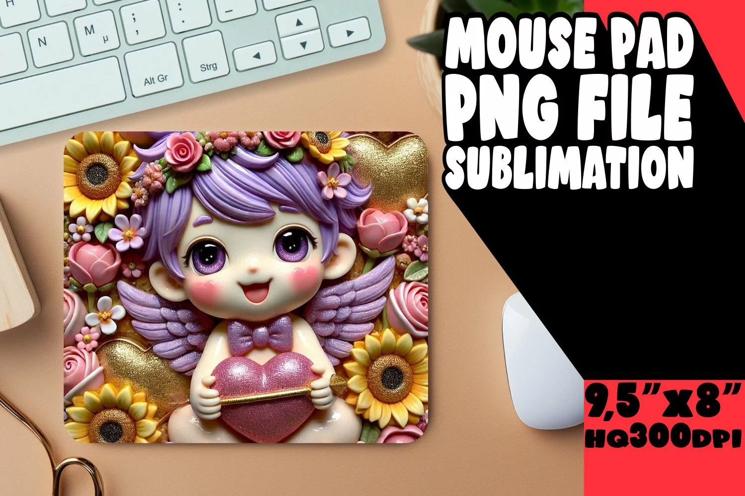 Similar Design Products to JOYFUL MOUSE PAD PNG ART, 3D Cupid