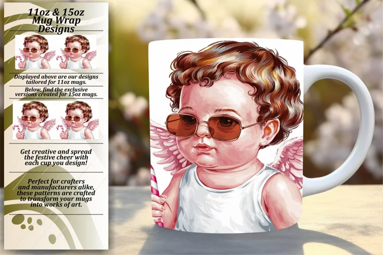 Vibrant 11oz Mug Wrap Png Artwork , Cupid example image 1