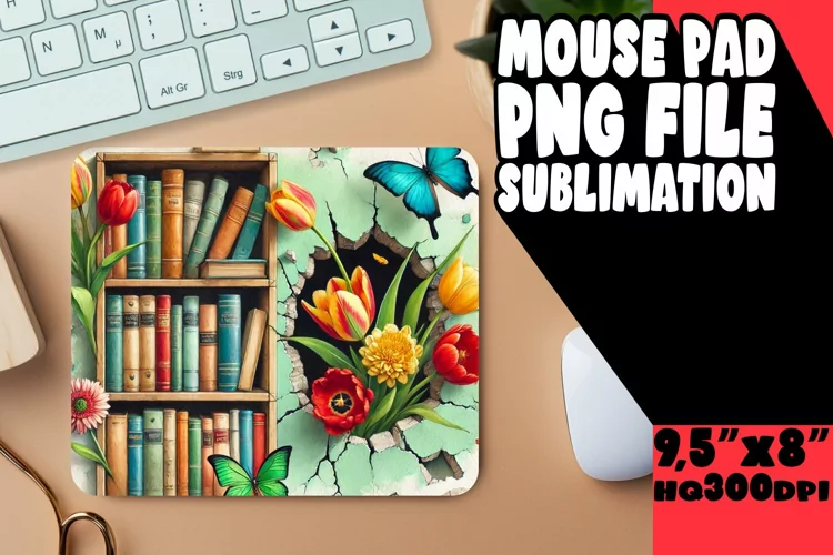 Vibrant mouse pad SUBLIMATION PNG, Books