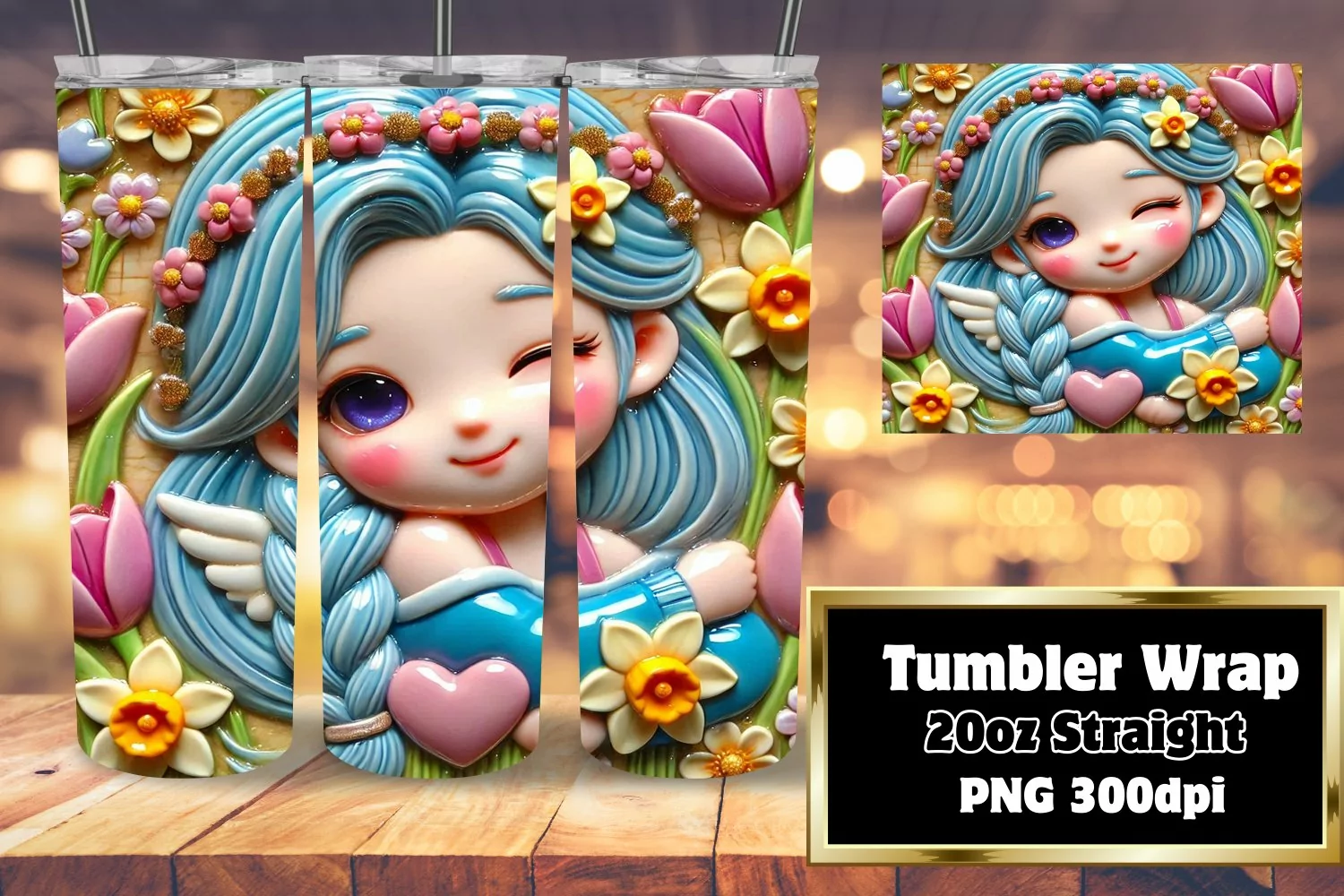 GRACEFUL 20oz Tumbler Wrap for DIY , 3D Cupid example image 1