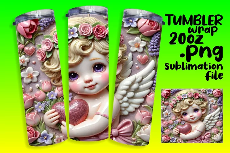 VIVID 20oz Sublimation Tumbler Template , 3D Cupid