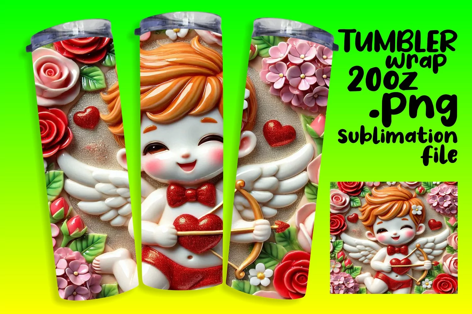 RADIANT 20oz Tumbler Wrap for Personal Use , 3D Cupid example image 1