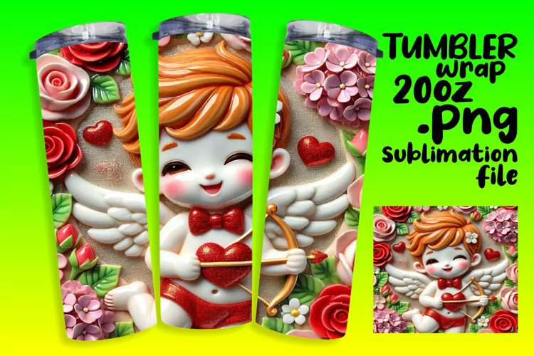 RADIANT 20oz Tumbler Wrap for Personal Use , 3D Cupid
