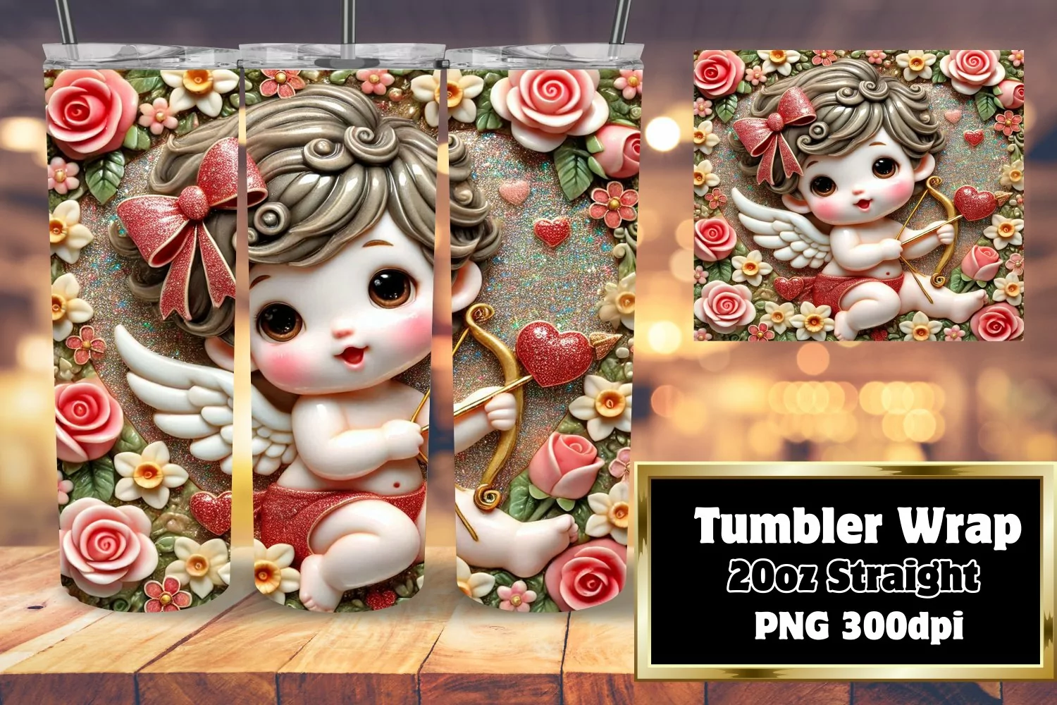 CUSTOM 20oz Tumbler Artwork for DIY Projects , 3D Cupid