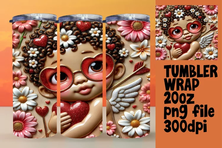 RADIANT 20oz Tumbler PNG Design , 3D Cupid example image 1
