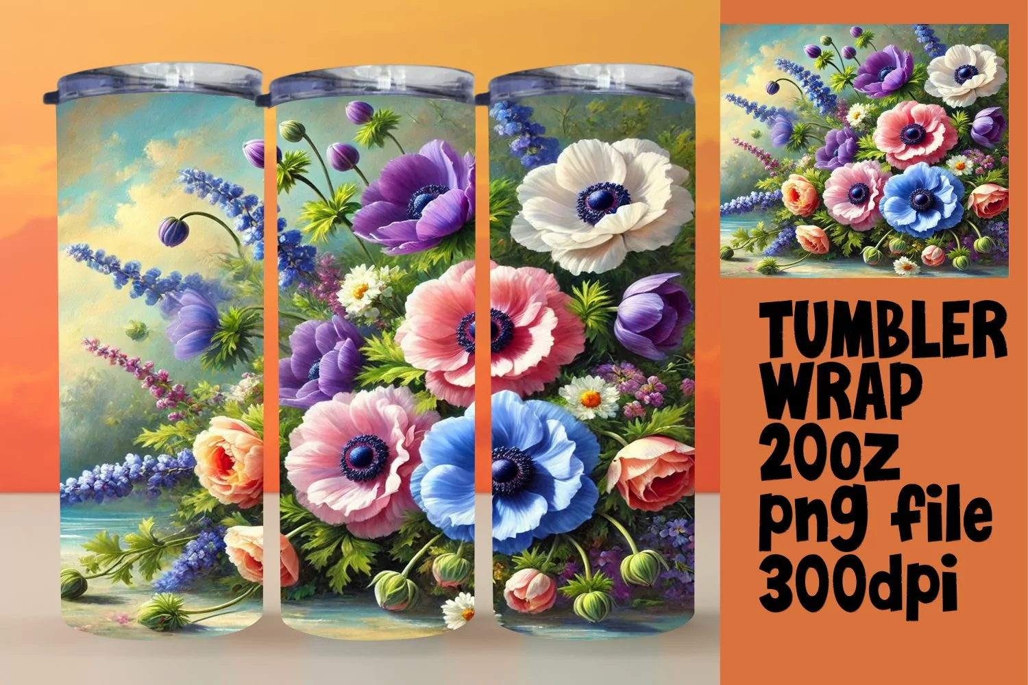 You will receive 1 PNG file, high-resolution at 300 DPI, specifically designed for 20oz skinny tumblers (dimensions: 9.3“ x 8.2“). Each design is beautifully **designed using AI**, providing you with vibrant graphics that stand out.