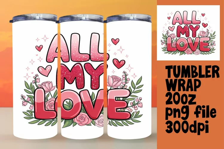 Sublimation Artwork for 20oz Tumbler , Valentines