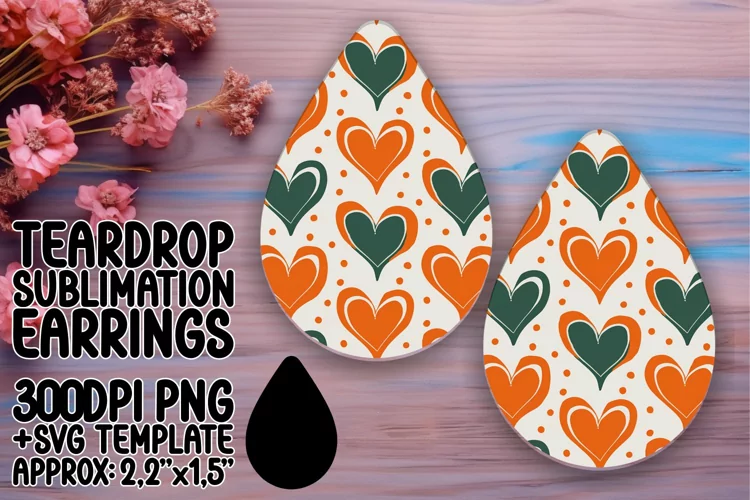 Sophisticated Teardrop Earrings Sublimation Art , Heart example image 1