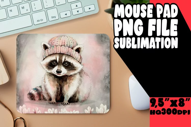 Mouse Pad Office Supplies Cute Animals Png Sublimation Design Raccoon Flowers Sublimation Printing Raccoon Design Mouse Pad Design Mouse Mat Blooming Raccoon