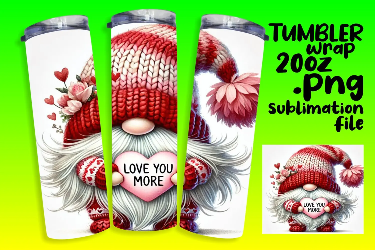 SLEEK 20oz Sublimation Tumbler Template , Gnomes