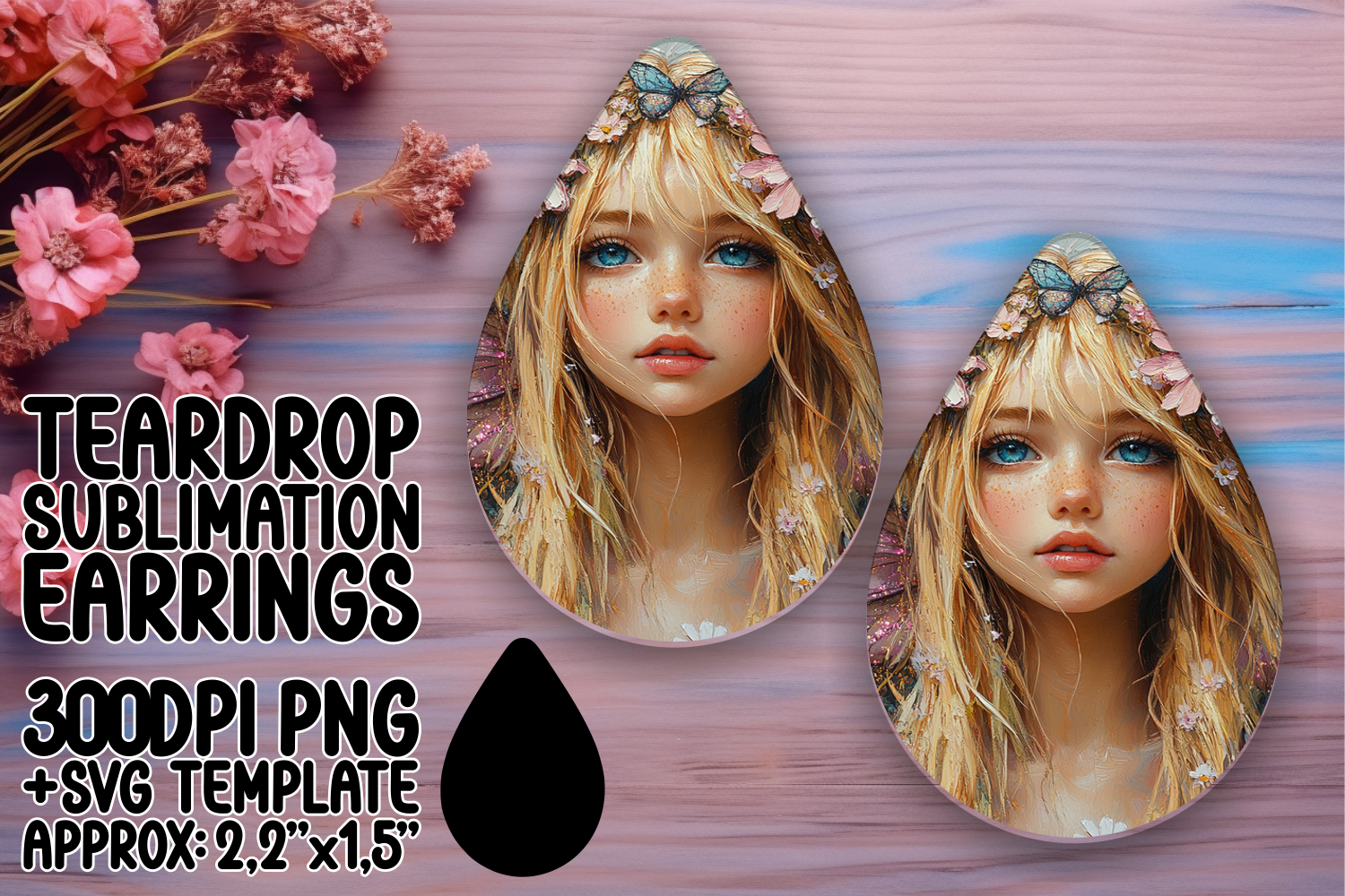Fresh Teardrop Earrings Sublimation Art , Fairy example image 1