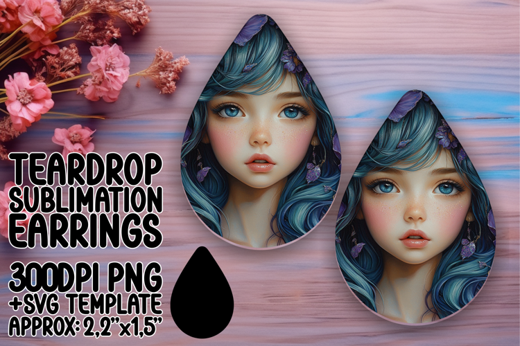 Elegant Teardrop Earrings Sublimation Template , Fairy