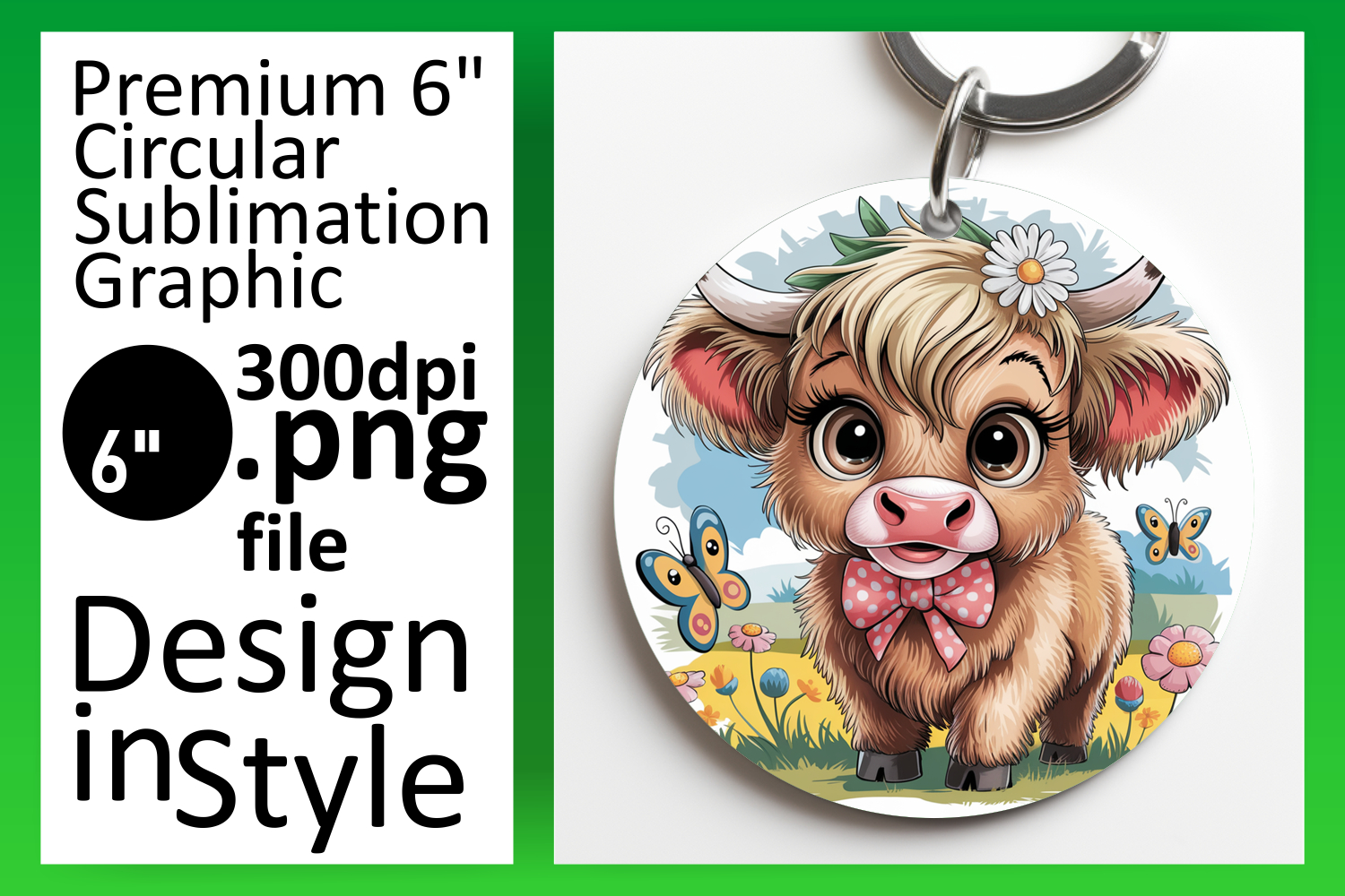 Stylish Round Design Keychain Artwork , Cute Cow example image 1