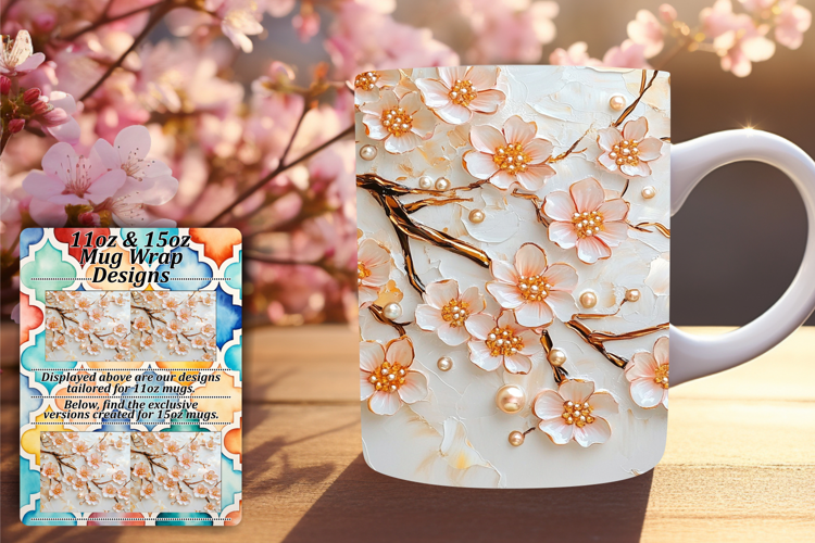 Artistic 11oz Mug Wrap Png Template , 3D Flower