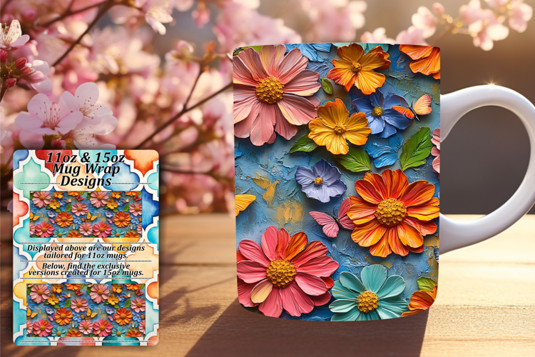 GRACEFUL 11oz PNG Mug Wrap Design , 3D Flower