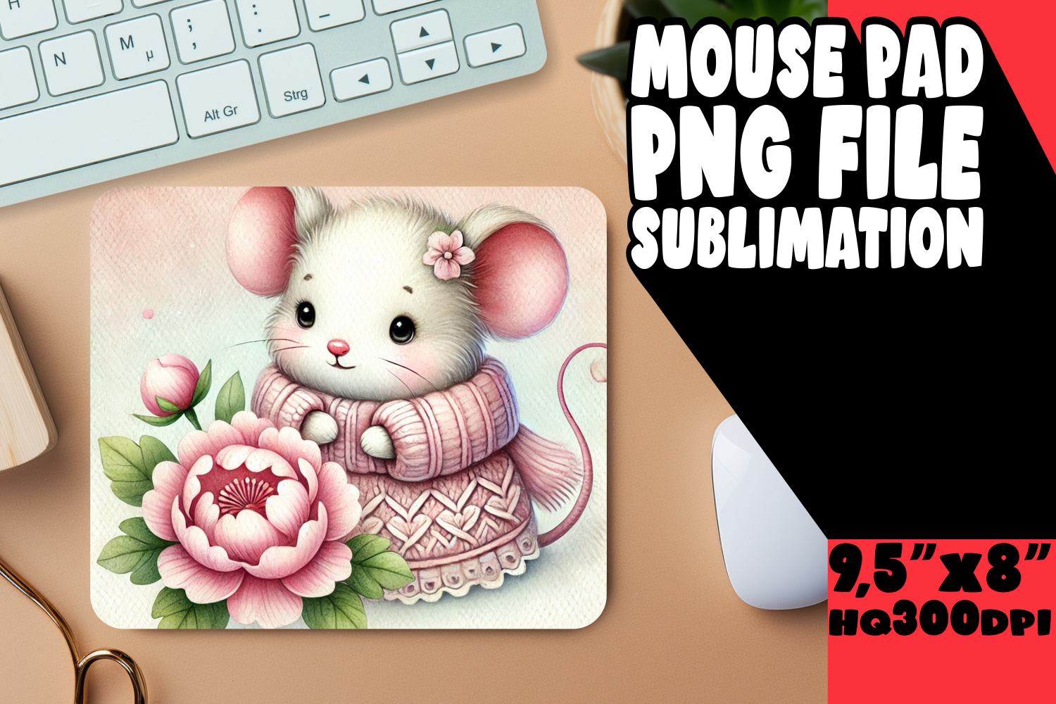 VIBRANT MOUSE PAD SUBLIMATION PNG, Cute Animals