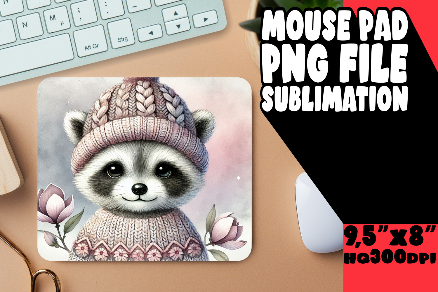 Mouse Pad Office Supplies Cute Animals Png Sublimation Design Raccoon Flowers Sublimation Printing Raccoon Design Mouse Pad Design Mouse Mat Blooming Raccoon