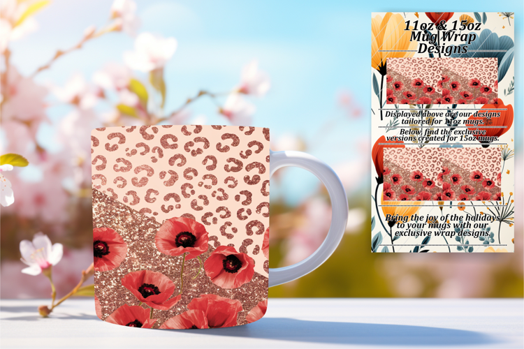 Glamorous 15oz Mug Wrap Png Design , Leopard Print