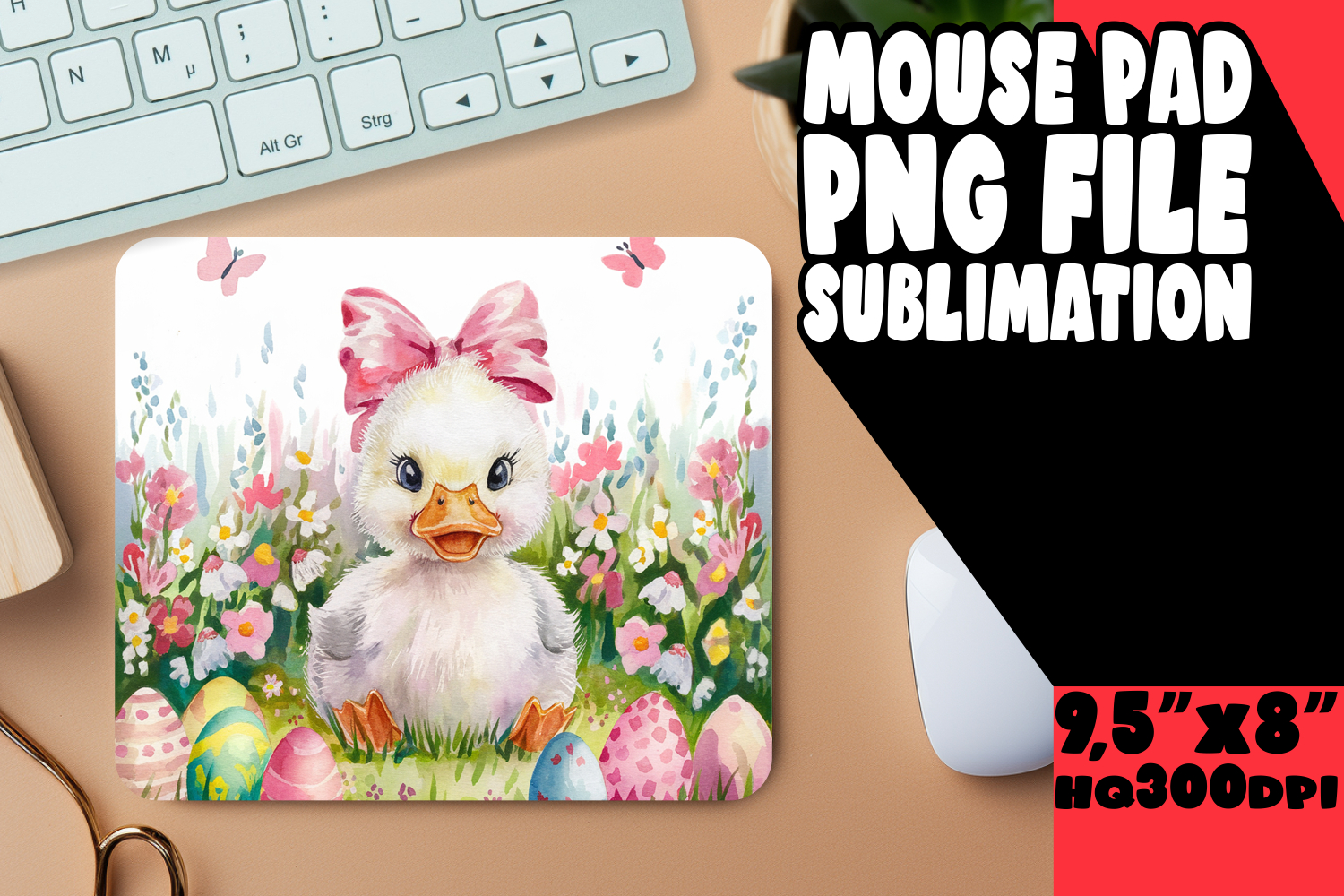 CHEERFUL MOUSE PAD SUBLIMATION PNG, Cute Easter
