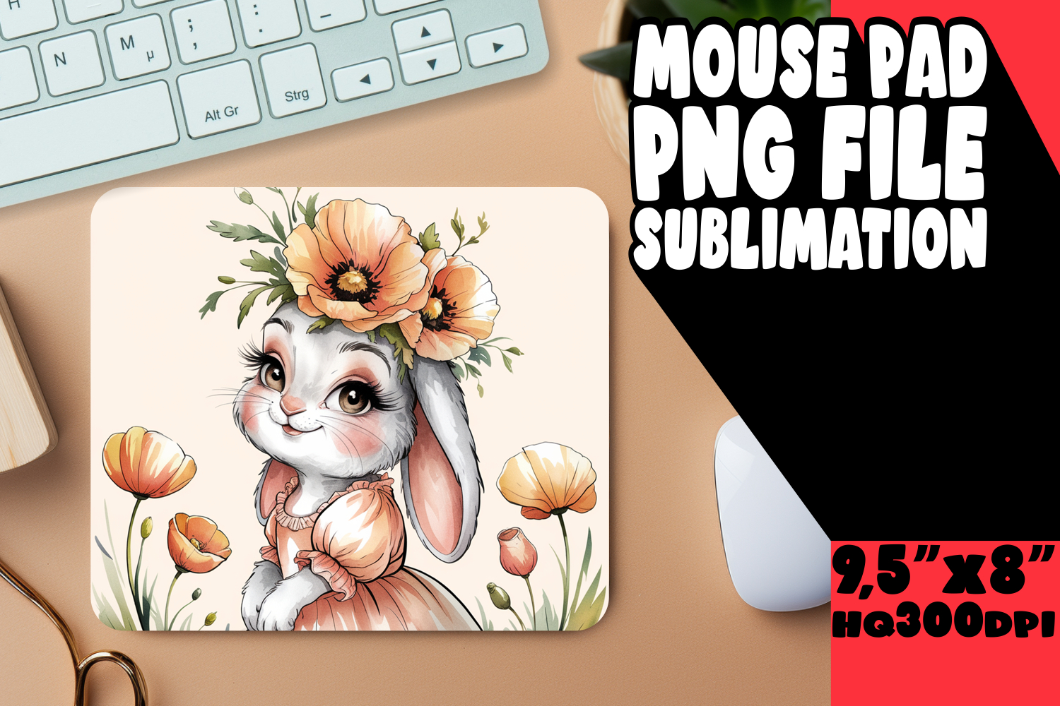 Cheerful Desk Mat Sublimation, Cute Bunny