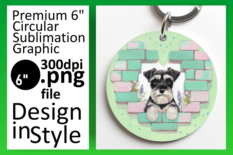 Vibrant Round Design Keychain Artwork , Cute Dog example image 1