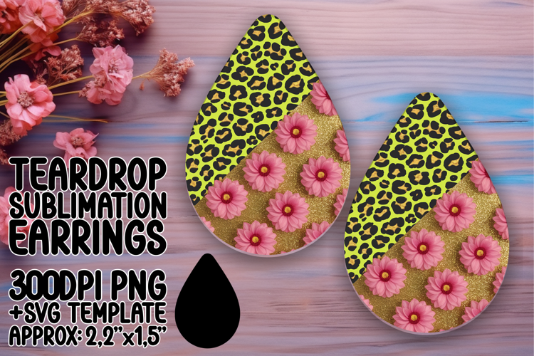 Creative Teardrop Earrings Sublimation Template , Leopard Pr example image 1