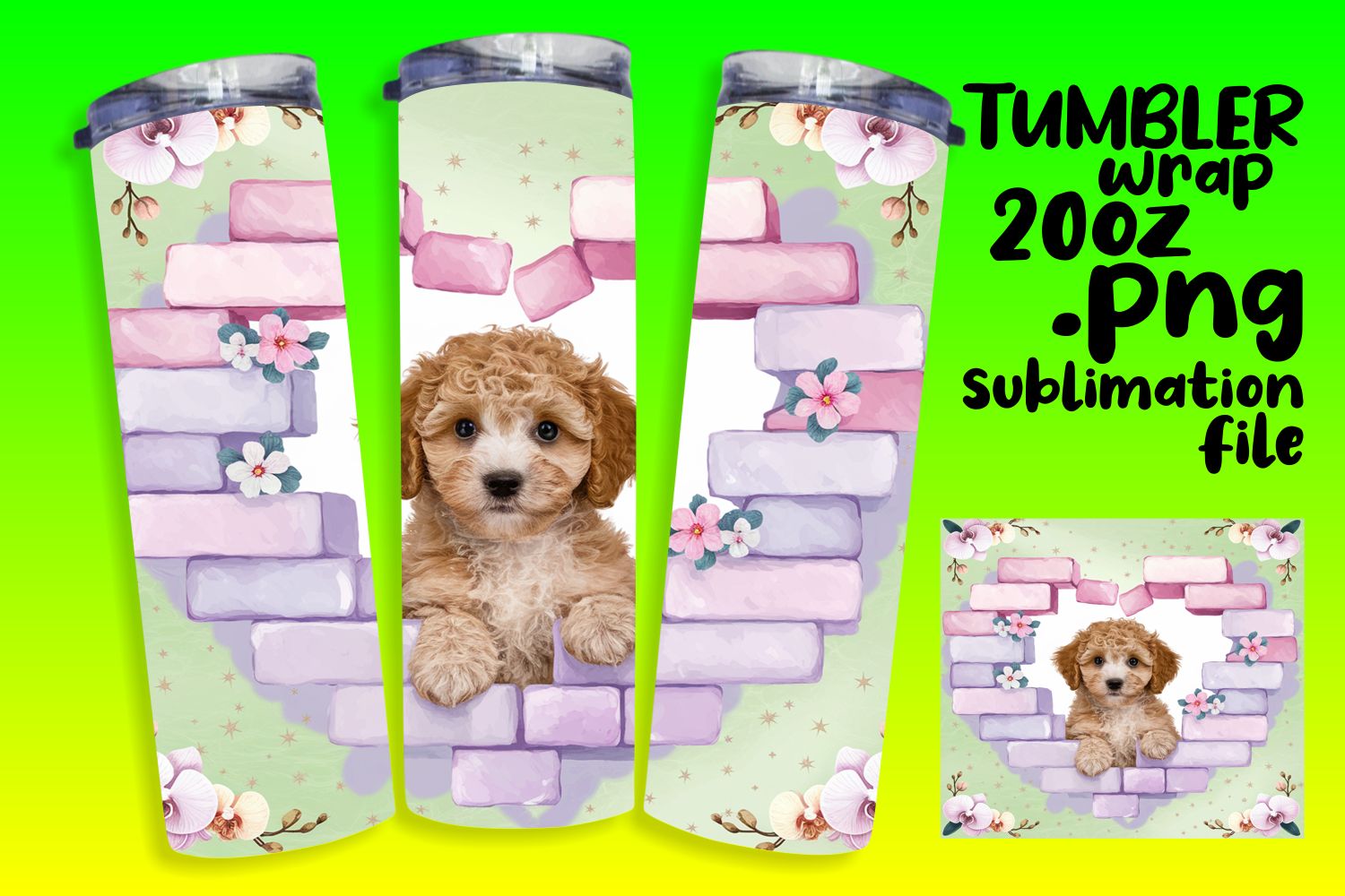 20oz Tumbler Template for All Occasions , Cute Dog