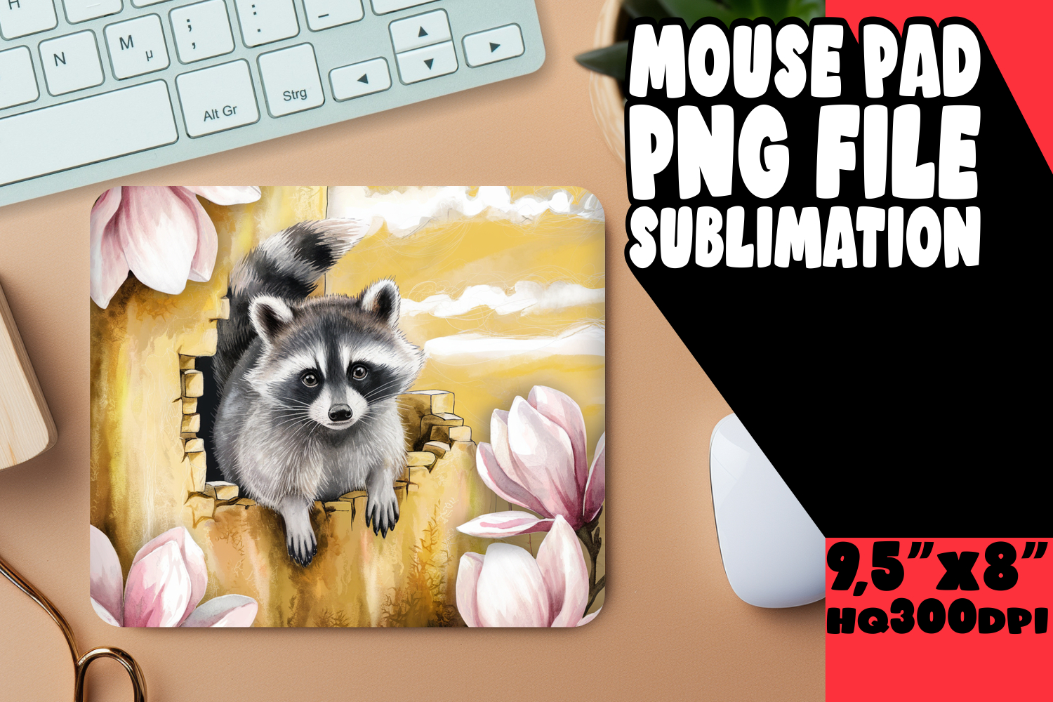 Mouse Pad Office Supplies Cute Animals Png Sublimation Design Raccoon Flowers Sublimation Printing Raccoon Design Mouse Pad Design Mouse Mat Blooming Raccoon