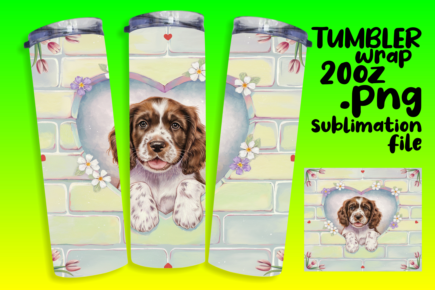 VIBRANT 20oz Tumbler Artwork for Sublimation , Cute Dog